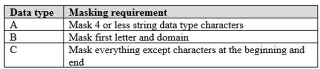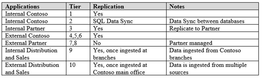 The company has a reporting infrastructure that ingests data from local databases and partner services. Partners services consists of distributors, wholesales, and retailers across the world. The company performs daily, weekly, and monthly reporting. Requirements Tier 3 and Tier 6 through Tier 8 application must use database density on the same server and Elastic pools in a cost-effective manner. Applications must still have access to data from both internal and external applications keeping the data encrypted and secure at rest and in transit. A disaster recovery strategy must be implemented for Tier 3 and Tier 6 through 8 allowing for failover in the case of server going offline. Selected internal applications must have the data hosted in single Microsoft Azure SQL Databases. Tier 1 internal applications on the premium P2 tier Tier 2 internal applications on the standard S4 tier The solution must support migrating databases that support external and internal application to Azure SQL Database. The migrated databases will be supported by Azure Data Factory pipelines for the continued movement, migration and updating of data both in the cloud and from local core business systems and repositories. Tier 7 and Tier 8 partner access must be restricted to the database only. In addition to default Azure backup behavior, Tier 4 and 5 databases must be on a backup strategy that performs a transaction log backup eve hour, a differential backup of databases every day and a full back up every week. Back up strategies must be put in place for all other standalone Azure SQL Databases using Azure SQL-provided backup storage and capabilities. Databases Contoso requires their data estate to be designed and implemented in the Azure Cloud. Moving to the cloud must not inhibit access to or availability of data. Databases: Tier 1 Database must implement data masking using the following masking logic: