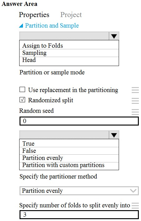 Testing You must produce multiple partitions of a dataset based on sampling using the Partition and Sample module in Azure Machine Learning Studio.