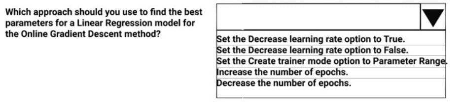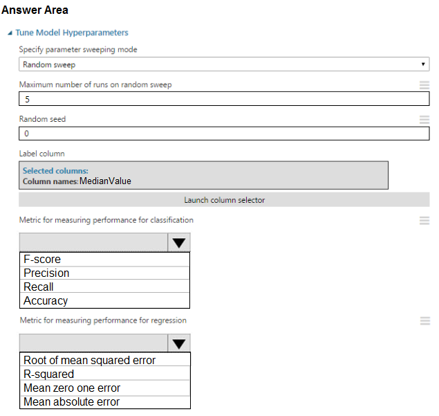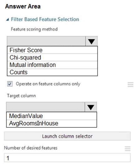Experiment requirements You must set up the experiment to cross-validate the Linear Regression and Bayesian Linear Regression modules to evaluate performance. In each case, the predictor of the dataset is the column named MedianValue. You must ensure that the datatype of the MedianValue column of the Paris dataset matches the structure of the London dataset. You must prioritize the columns of data for predicting the outcome. You must use non-parametric statistics to measure relationships. You must use a feature selection algorithm to analyze the relationship between the MedianValue and AvgRoomsInHouse columns.