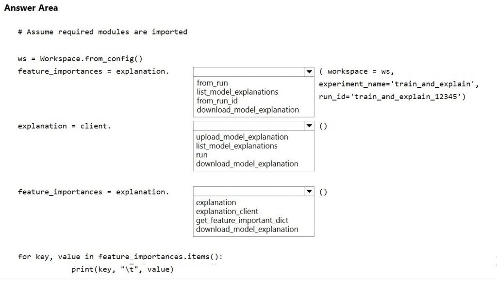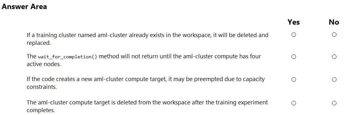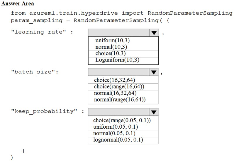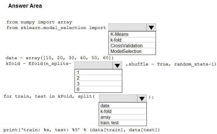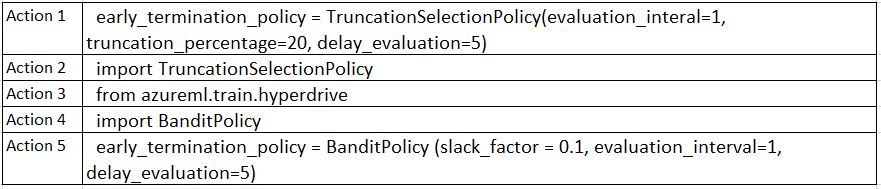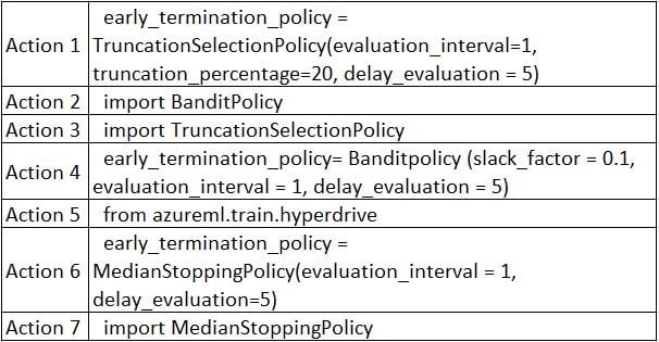 Question DRAG DROP You need to implement early stopping criteria as stated in the model training requirements. Which three code segments should you use to develop the solution?Select 1 option(s):